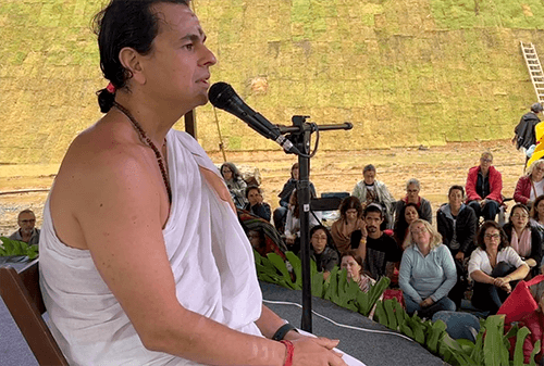 Vedānta no país. E tem o seu profundo respeito também ao seu primeiro professor, Santoshi Valuri, que abriu para ele esse caminho e essa tradição.